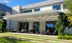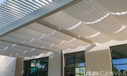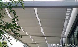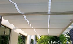 USA Canvas fabricated and installed this residential Roman Shade for of the residences at Dentwood Drive in Dallas, TX. The wavy finish is attractive and uses Sunbrella fabric, which is weather & fade resistant.