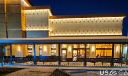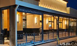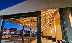 We’re thrilled to have partnered with RCC Associates to enhance the Highland Village Cheesecake Factory outdoor seating area with a stunning patio cover. This custom-built solution features tan fire resistant fabric for a timeless look, complemented by a built-in gutter system for efficient rainwater management. Installed atop existing beams and powder-coated for durability, our patio cover seamlessly integrates into the restaurant’s architecture while providing essential shade and weather protection. Crafted with Firesist Sand fabric, our patio cover ensures durability and fire resistance, ensuring a safe and enjoyable environment for patrons. Trust USA Canvas to deliver premium patio covers tailored to your commercial space, combining functionality, durability, and style to elevate outdoor dining experiences.