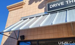 We recently completed a project for BCD Inc. at Starbucks #9540 in Arlington, TX, installing a sleek Metal Awning often referred to as a Standing Seam canopy. Designed to enhance the storefront and entryway, our metal awning offers both functional benefits and aesthetic appeal. Crafted with high-quality materials, it provides durable protection from the elements while adding a modern touch to the restaurant’s exterior. Our tailored solution ensures that Starbucks #9540 not only stands out visually but also provides a welcoming environment for customers. Trust in our expertise at USA Canvas to deliver top-quality metal awnings that blend seamlessly with any architectural style, enhancing the curb appeal and functionality of your establishment.