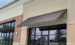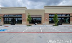 USA Canvas fabricated and installed these standing seam canopies for Shops at Frisco which is located at Frisco, TX. The canopies use an MBCI High Batten panel to achieve this look. The frame is fully welded in our Dallas Texas shop then powder coated and installed by our professional crews.